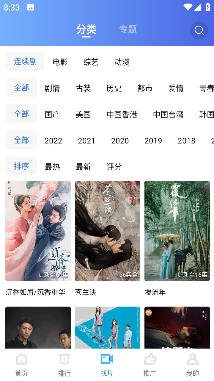 2. 版块分类,对每个影视剧版块都进行了分类,可以轻松的找到想要看的各种内容。