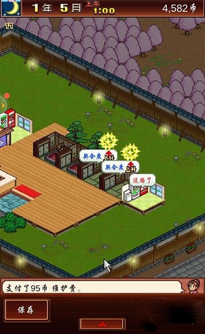 另外说一下,这个时候出现的这个提示太误导人了。景色不是最重要的,人气才是最重要的。在人气很低的时候加景色根本不会增加人气。所以最开始不需要花很多钱去买那些高级景观,种上松树就行了。要把钱节约起来买各种道具和开新客户层。