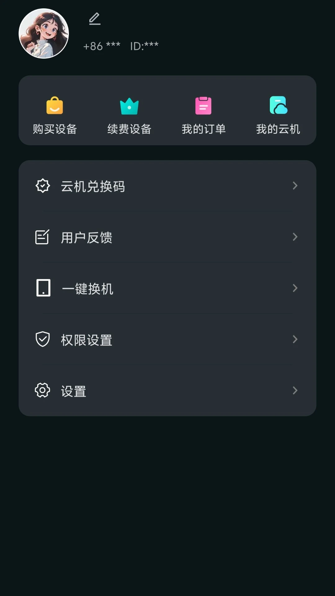 3. 点击“我的”即可查看个人的云手机设备列表和使用状态。