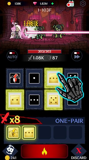 黑暗敲击游戏是一款沉浸式的像素闯关游戏,还结合了扑克和像素的随机性挑战,玩法很丰富,策略性的乐趣都可以尝试,提供了很多可以选择的骰子来进行玩耍,不断激活自己的能力和效果,帮助玩家来更好的击败不同的敌人,多样化的骰子都会出现,玩家还能够释放出强力的连击来打造出更高的伤害,喜欢黑暗敲击游戏的玩家一定不要错过!