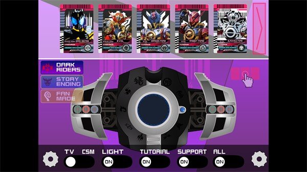 假面骑士黑暗帝骑模拟器1.1是一款非常好玩的休闲变身模拟类型的游戏,玩家们可以在游玩的过程当中体验到很多独特的内容以及玩法,很多独特的内容都是会给你很棒体验的哦。整个游戏还原度也是非常不错的,大家可以找到丰富的卡片去进行选择,触发各种不一样的组合去享受变身的乐趣。