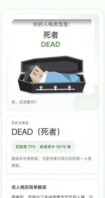 还有 “装死者(ZZZZ)”(拖延症晚期,死线前才爆发潜力)、“自我攻击者(IMSB)”(习惯性内耗、自我否定)、“孤儿SOLO”(用疏离感保护自己,主打 “莫挨老子”)、“无所谓人(OJBK)”(缺乏主见,凡事“随便”)、“尤物(SEXY)”(自信张扬,自带气场)等,覆盖了年轻人几乎所有的情绪与状态。