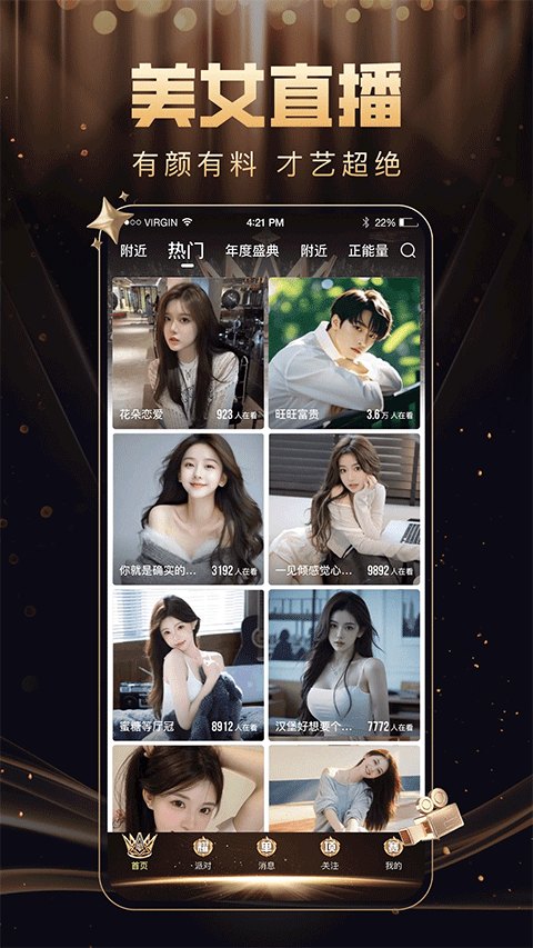 九秀直播是正规真人在线视频直播平台,集娱乐、社交、交友于一体,24小时不间断直播。平台汇聚海量高颜值主播,涵盖萌妹、御姐、才艺达人等多种风格,还有2000多位明星艺人入驻,提供K歌、舞蹈等丰富才艺表演。支持连麦互动、同城交友,内置礼品福利与红包奖励,观看即有惊喜。同时为草根音乐人提供展示平台,助力实现梦想,操作便捷,能让用户摆脱孤单、分享快乐,享受沉浸式互动娱乐体验。