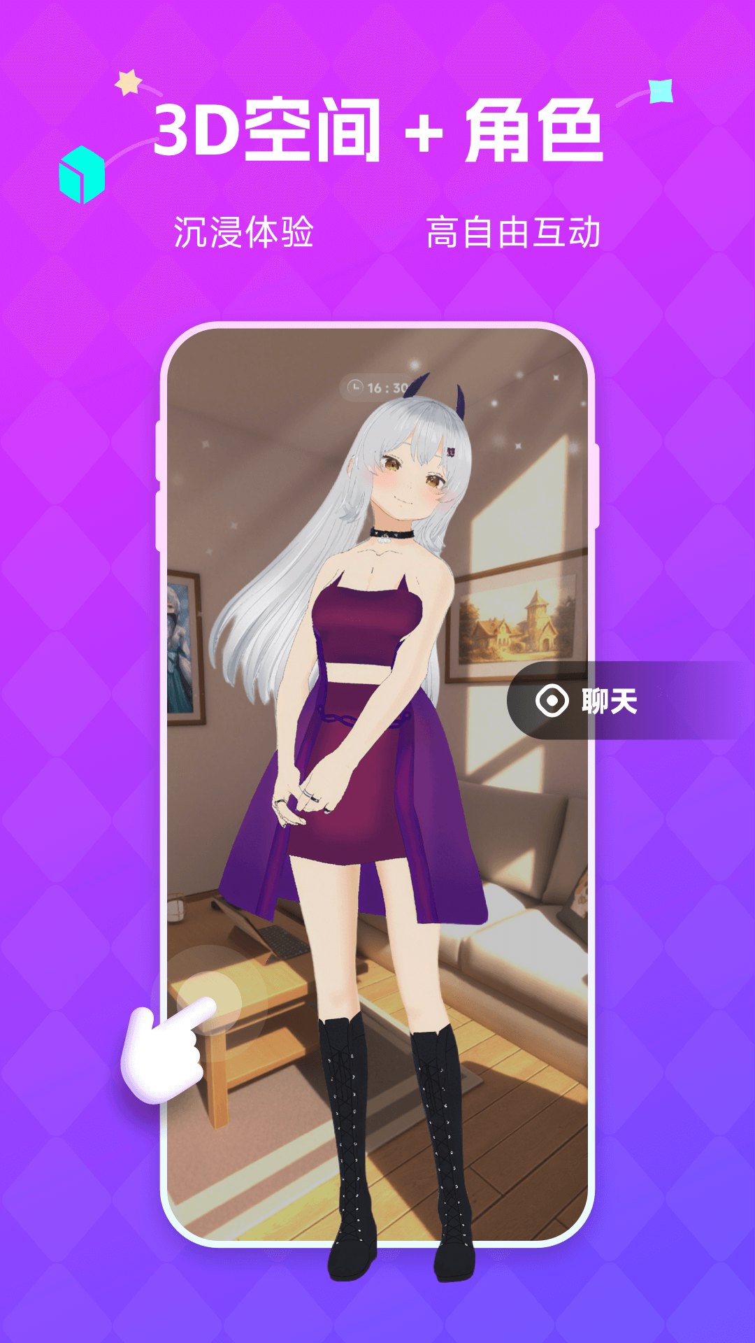 切换至3D场景,观看角色动作、表情回应。